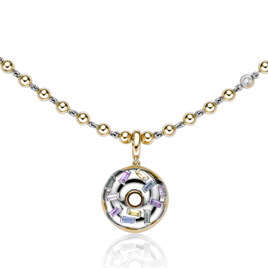 Doughnut Pendant in 18K Yellow Gold, Platinum and Sapphires
