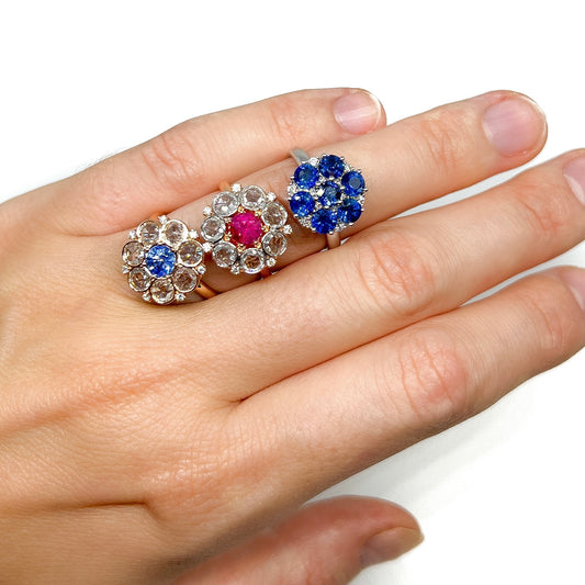 Never get bored and never go wrong with our curated timeless diamond and gemstone fine jewellery ring collection in 18k gold and platinum, designed for stacking together or wearing solo. Discover our beautiful range of one off rings to make a statement, beautiful scintillating diamond rings and colourful gemstone rings. Want to make a statement and love snakes - check out our Tatler featured diamond encrusted Bamboo pit viper snake ring in solid 18k gold and diamonds. Fancy an 80s style ring? We've gor you covered with our heavy solid 18k gold ring. From luscious green emerald eternity rings, to icy blue aquamarine cocktail rings, striking blue and yellow sapphire, red ruby and spinel evening rings hand crafted in our Atelier in Hong Kong. Our in stock rings feature rose cut diamonds, round brilliant and emerald cut diamonds, and we can create your dream ring with any other shape diamond. Choose from our in stock rings or design your own one of a kind bespoke ring.