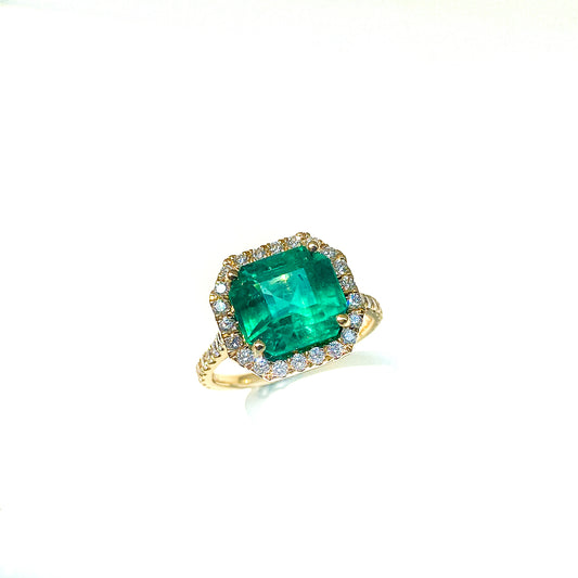 5.51ct Oval Colombian Emerald and Pear Shape Diamond Ring
