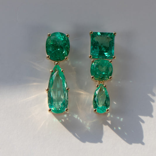 Colombian Emerald Statement Asymmetrical Drop Earrings