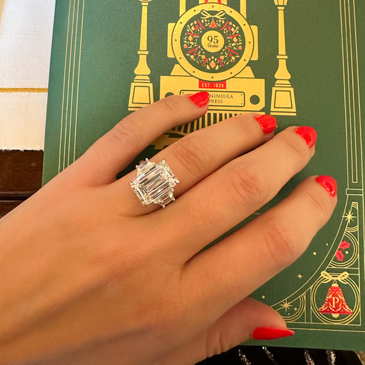 8.53ct Emerald Cut Diamond Engagement Ring with Trapezoids