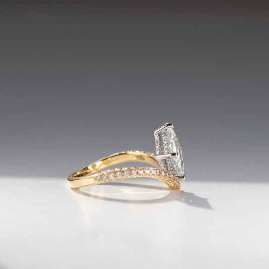 Pear Cut Diamond Engagement Ring with Hidden Halo