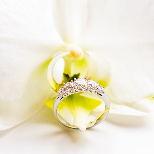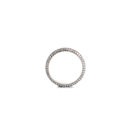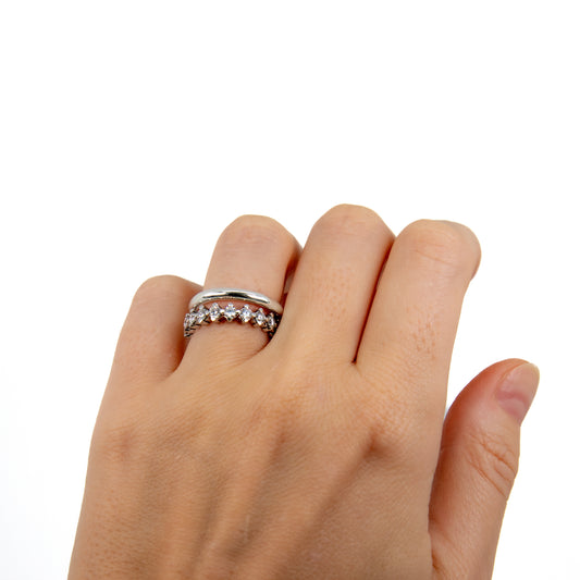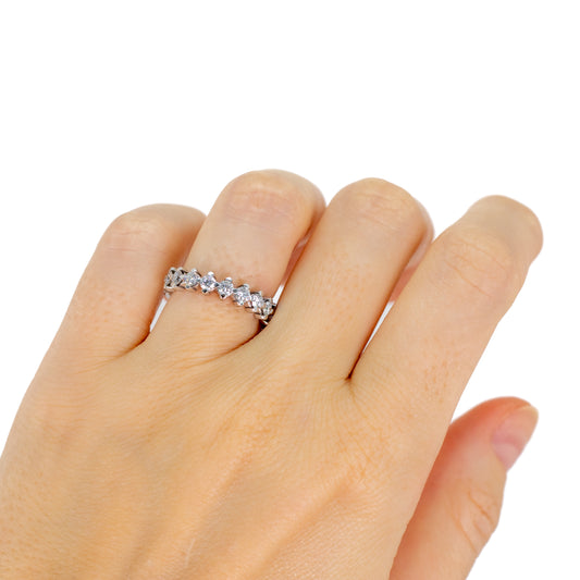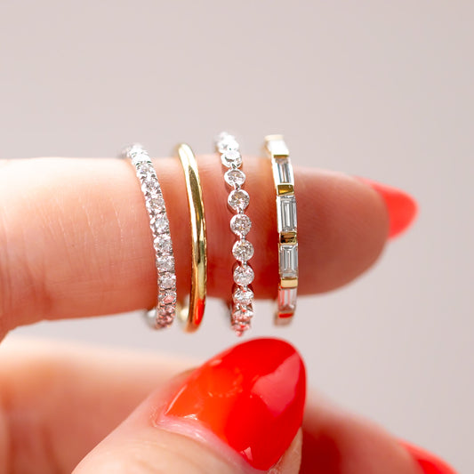 At Valentina Fine Jewellery, we love to curate a beautiful diamond ring stack. With the engagement ring in place, you now have the option to dress your ring up with even more diamonds or to keep it classic and demure with our solid 18k round wedding ring. We have an array of beautiful diamond eternity rings and wedding band styles. Unsure which band will match best with your engagement ring? Meet us over a coffee and we can show you some styles and designs that will make your stack pop! All of our diamond eternity rings look beautiful stacked with your engagement ring or worn solo on another finger or hand. All of our diamonds are hand selected and matched by our GIA Diamond Specialist and founder, Anastasia; and we typically use excellent and very good cut only and VS clarity or better to ensure your ring is the sparkliest in the room.