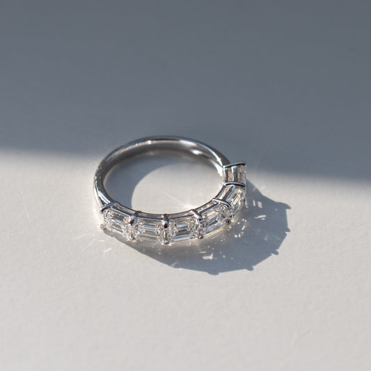 East-West Set Emerald Cut Diamond Wedding Ring & Eternity Band