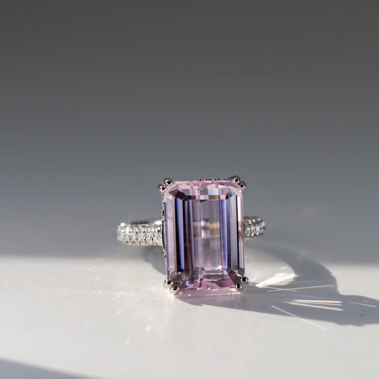 Beautiful pink kunzite fine jewellery and rings with diamond. Shop our kunzite statement cocktail ring today. Contact us to create a bespoke kunzite heirloom piece of jewellery just for you.