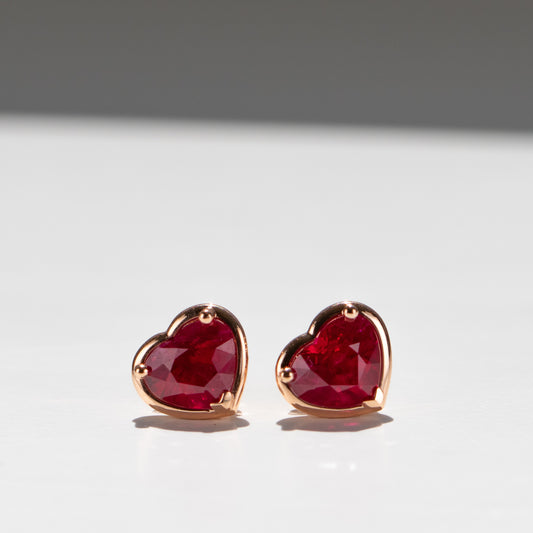 Burma "Pigeon Blood" Ruby Studs in 18k Rose Gold