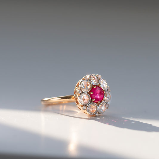 Signature Cluster Ruby and Rose Cut Diamond Ring